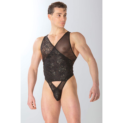Modus Vivendi Muslin Singlet men’s underwear string body – shop sexy male all in ones with a vest top and thong bottom. See through lots more online